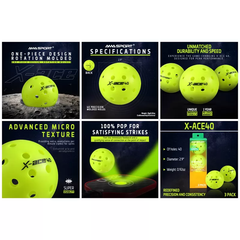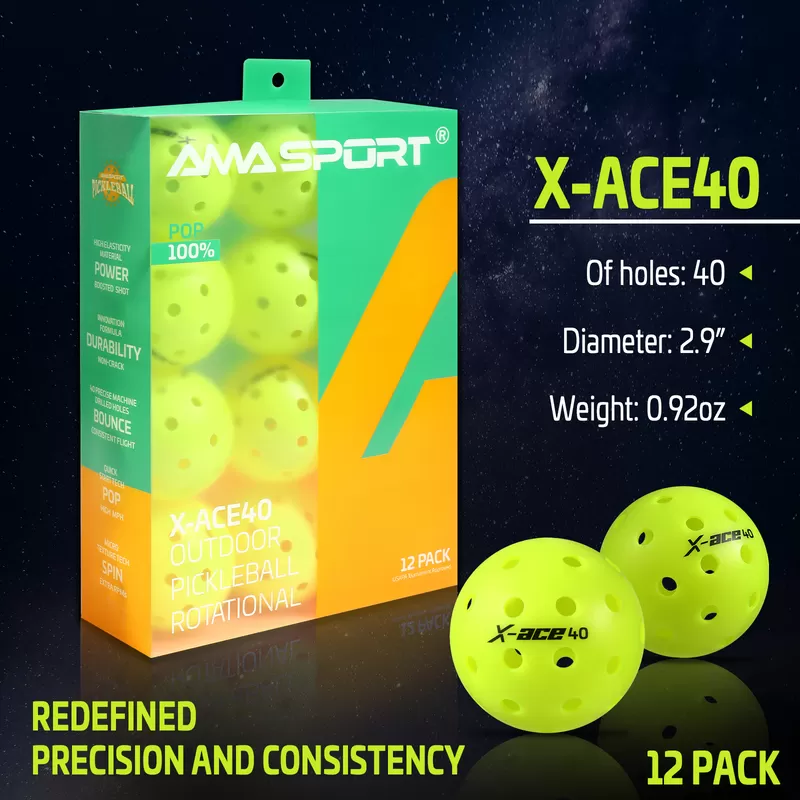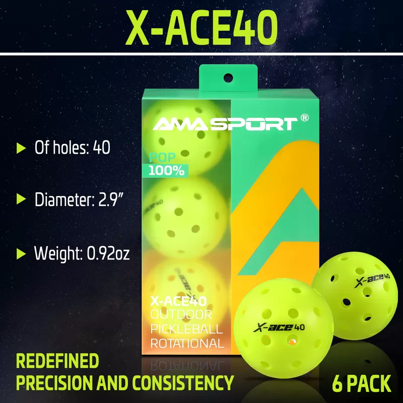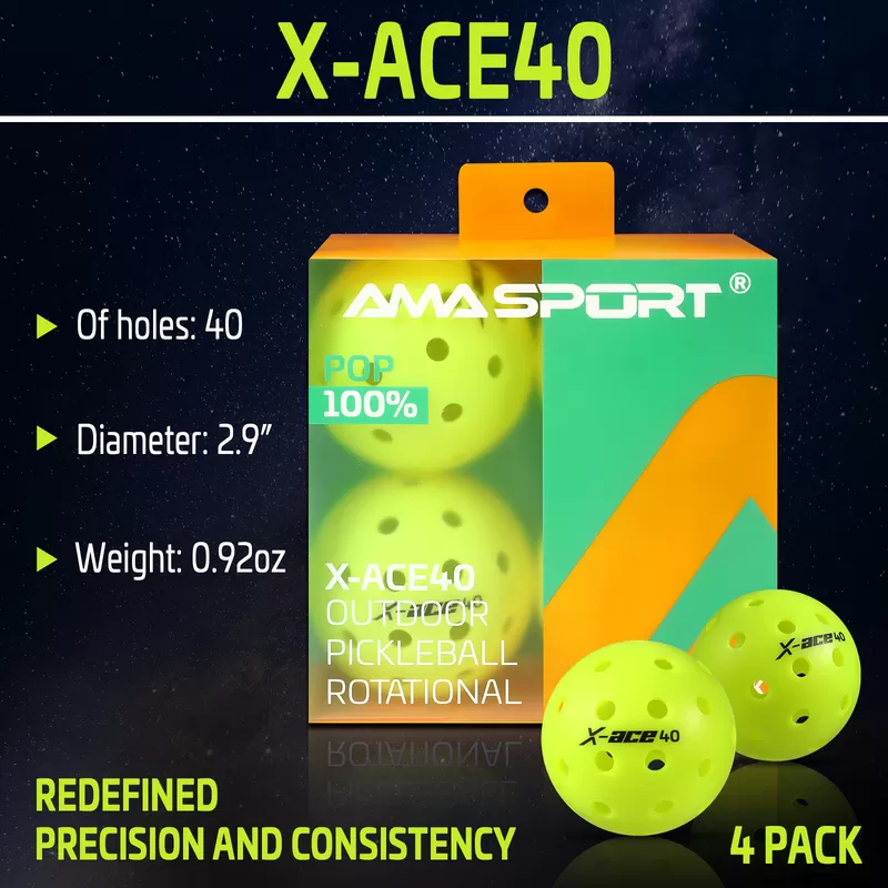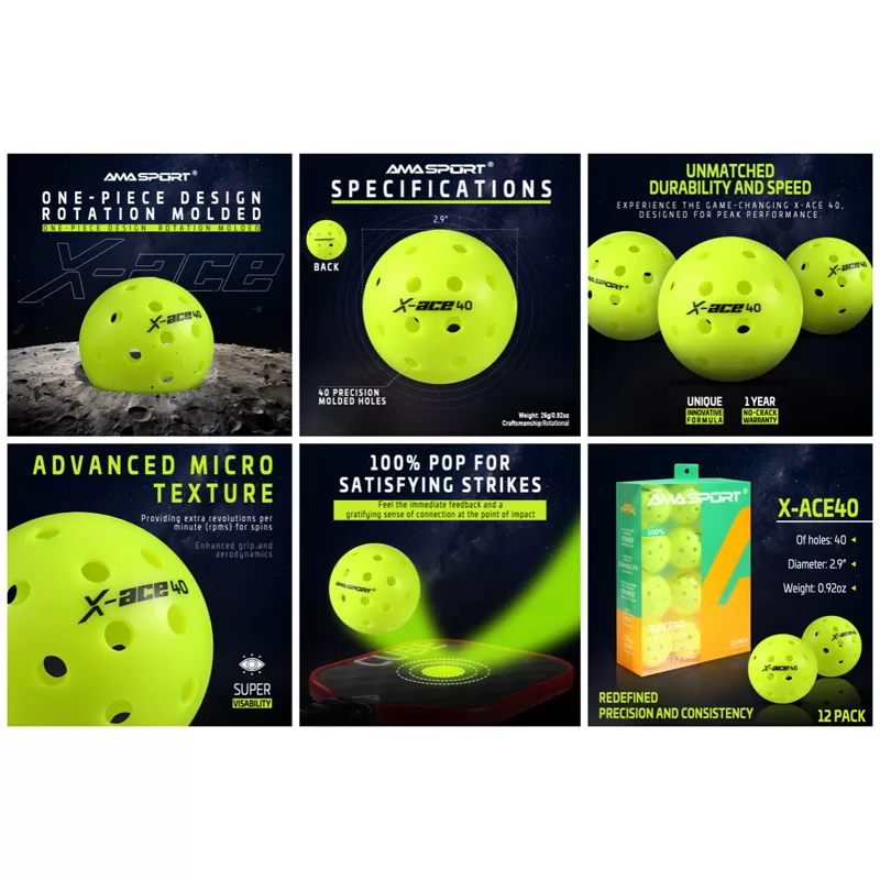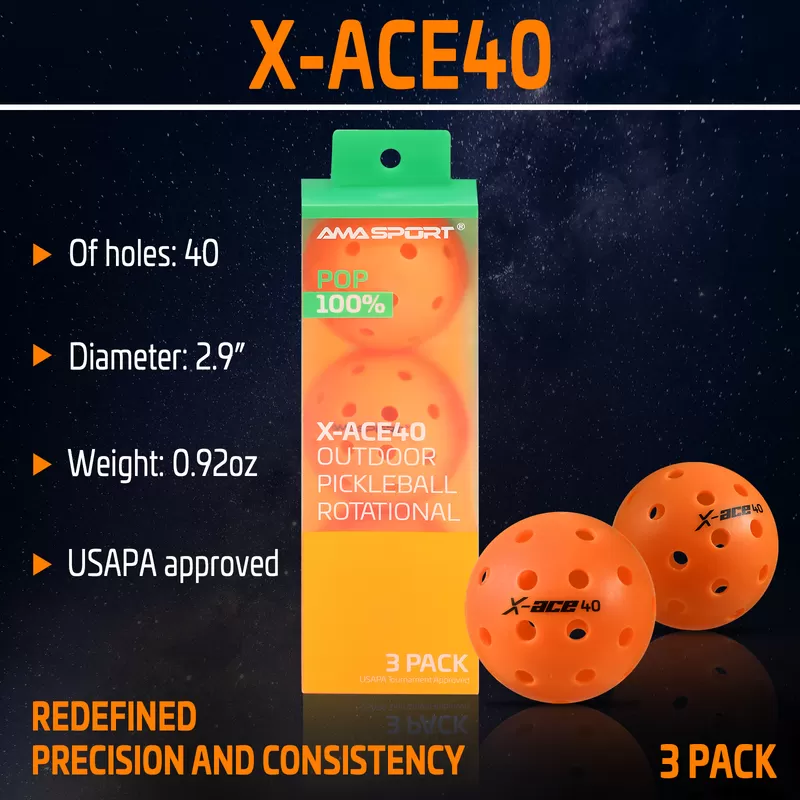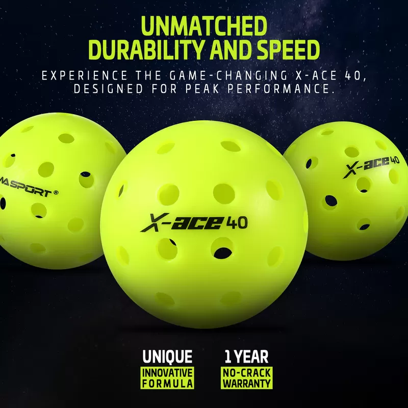 Engineered for high-performance play, the X-Ace 40 features a seamless, crack-resistant one-piece construction that delivers exceptional durability and consistent 100% pop response. Its Quick Start Technology ensures lively bounce and immediate feedback from the first serve, while 40 precision-drilled holes promote stable flight and controlled aerodynamics. Enhanced with a micro-textured surface for improved spin, this ball offers tournament-grade reliability for players seeking lasting quality and responsive play in every match.