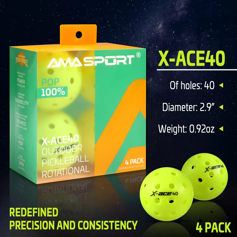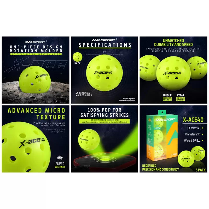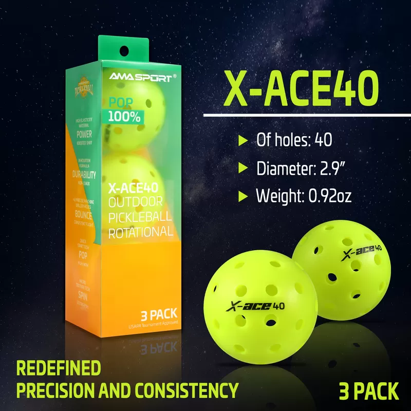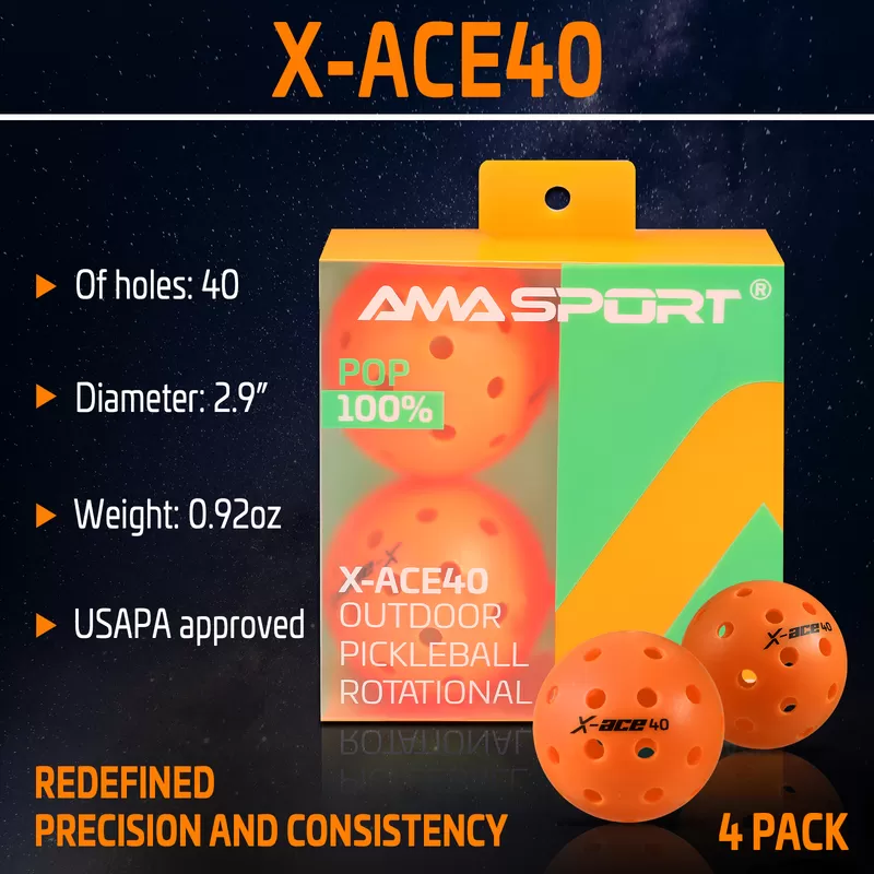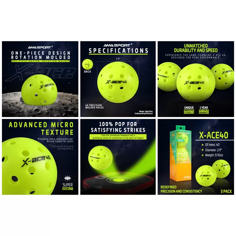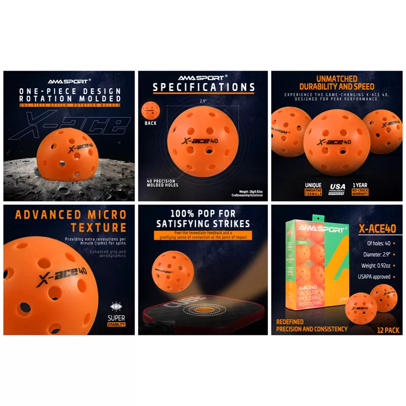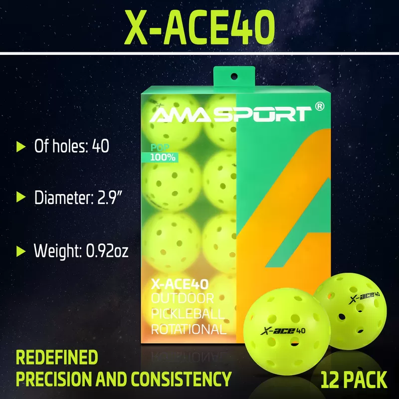 Engineered for high-performance play, the X-Ace 40 features a seamless, crack-resistant one-piece construction that delivers exceptional durability and consistent 100% pop response. Its Quick Start Technology ensures lively bounce and immediate feedback from the first serve, while 40 precision-drilled holes promote stable flight and controlled aerodynamics. Enhanced with a micro-textured surface for improved spin, this ball offers tournament-grade reliability for players seeking lasting quality and responsive play in every match.