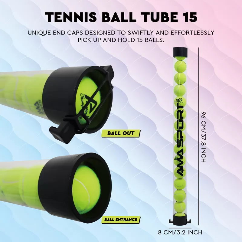 The AMA Industry Tennis Ball Hopper is a 15-ball tube designed for efficient training and daily court use. Its easy ball pickup and simple dispensing system allow quick collection and release without bending. Lightweight and portable, it features a shoulder strap for hands-free transport around the court. Made with durable materials, it supports consistent daily use. Available in multiple colors—Transparent, Orange, Blue, and Dark Blue—with OEM/ODM customization options, the hopper is engineered for reliability, practicality, and scalable production for brands and training programs.